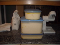 Värm mjölken till fingervarmt. Tillsätt hjorthornssalt, surdeg och mjöl och knåda 10 minuter. Tillsätt salt och knåda ytterligare 2 minuter på högre hastighet till en smidig deg. Låt vila i i lätt inoljad plastlåda i 1 timme i rumstemperatur eller upp till 24 timmar i kyl. Forma runda bullar och låt vila under bakduk 10 minuter. Kavla ut runda kakor på mjölat bakbord (gärna kornmjöl), 20-25 cm i diameter, och nagga. Grädda i torr het panna ett par minuter på varje sida. Låt svalna på galler utan bakduk och förvara torrt.