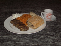 Blanda salt, peppar, oregano och timjan. Pensla olivoljan på ett stycke aluminiumfolie och lägg på köttet. Häll över citronsaften strö över kryddblandningen. Linda in köttet i åtminstone tre lager aluminiumfolie och lägg det hela i en ugnsform med lock. Stek i ugnen i 175 grader i 4-6 timmar beroende på hur stora köttbitarna är. Köttet ska vara så mört att det lossnar från benet när det är klart. Servera med potatis eller pourgouri, bröd och grekisk sallad. Pasticcio (cypriotisk lasagne)Inget ont om italiensk lasagne men den cypriotiska versionen är snäppet godare (och då är ändå min mammas italienska lasagne fantastisk). Pasta blandas med typiska cypriotiska ingredienser som halloumiost, kanel och mynta och är ett tvärsnitt av det mångkulturella köket. Som så många andra rätter är pasticcio lika god kall som varm.