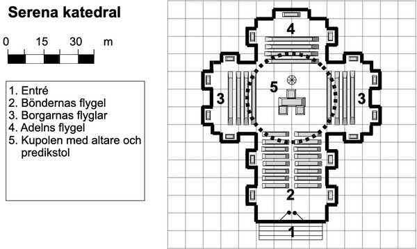 Serena är Cindarells huvudstad och säte för rikets konung, Serevan VIII. Hans livsöde är dock tragiskt. En olycka satte honom på tronen som ung då hans föräldrar dog och olyckor fortsatte att förfölja honom i form av missväxt, pest, förlusten av länet Nyhov (numera Brödrarike, se äventyret Brödernas stad) för att slutligen kulminera i det mystiska försvinnandet av hans drottning Alatea, älskad av både honom och hans folk. Serevan VIII är idag en bruten man, och många är de adelsmän som kräver att den gamle och barnlöse kungen ska lämna ifrån sig frändernas ring, Cindarells traditionella maktsymbol, och överlämna makten till en mer värdig ätt. Frågan förväntas dominera Konungens fred, den kungliga audiens som hålls varje vinter i Serena då fred råder och hög som låg, vän som fiende, löser sina dispyter med ord snarare än vapen.