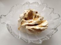 Vispa ihop mjölk, ägg och socker. Värm blandningen under omrörning tills den börjar tjockna. Låt svalna. Rör sedan i brynt smör och grädde. Ställ i kylen tills det är dags att göra glassen. Kör smeten i glassmaskin 20 minuter tills glassen är krämig. Garnera eventuellt med mer brynt smör och flingsalt. OstglassJag tycker om ost och jag tycker om glass. Då borde jag väl tycka om ostglass. Det här blir en krämig glass som passar bra att kombinera med sylt och kaksmulor till en glassefterrätt. Frågan är dock om inte vanlig cheesecase är både enklare och godare.