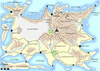 Längs bukten låg enkla små långhus uppradade och mellan dem rörde sig såväl människor som djur fram och tillbaka. Deras egen väg fortsatte runt hela bukten och ju djupare in den nådde, desto tätare blev bebyggelsen. Allra längst in i bukten delade sig vägen i en nordlig del som fortsatte runt bukten och en västlig del som slingrade sig genom en dalgång och upp mot bergen. Först nu stannade deras anförare och med en svepande gest mot bebyggelsen talade han till dem.