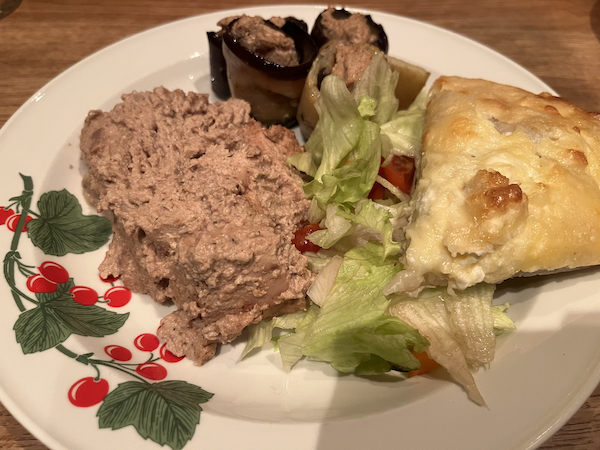 Mixa alla ingredienser till en slät massa, eventuellt med lite vatten för att få rätt konsistens. Använd sedan i andra rätter. (Beroende på vilken rätt som lagas så kan ytterligare ingredienser tillkomma.) Khachapuri (georgiskt ostbröd)Se Världens bröd. Auberginerullar med valnötterDe här små munsbitarna serverades vid så gott som varje middag och det med all rätt. Auberginernas mjuka konsistens och något bittra smak balanseras utmärkt av satsivins fyllighet och nötighet.